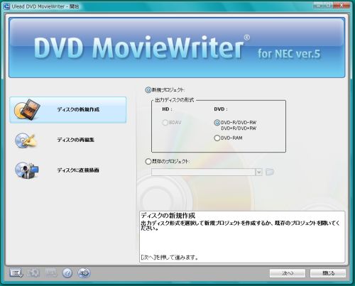 このプロジェクトと言うのは、DVDを作る際に映画のチャプターみたいに場面を作るなどする情報を覚えておくものです。